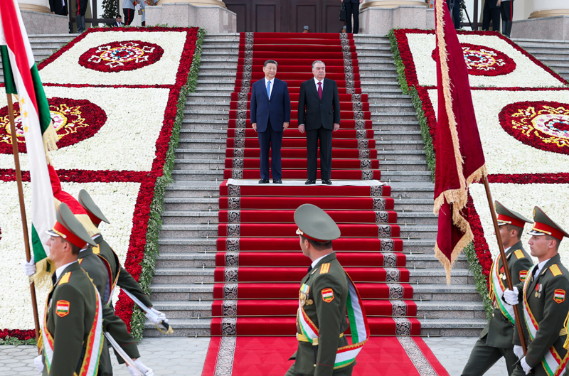 拉赫蒙为习近平举行盛大隆重的欢迎仪式。