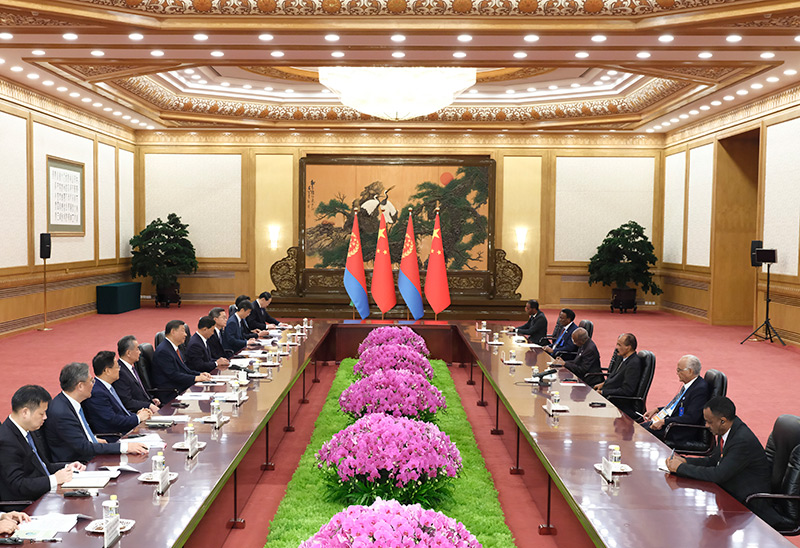 9月2日下午,国家主席习近平在北京人民大会堂会见来华出席中非合作论坛北京峰会的厄立特里亚总统伊萨亚斯。新华社记者 姚大伟 摄