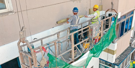 The staff was working on the renovation site of the old community in Dadong District on July 10.This year,Shenyang will transform 475 old residential areas,benefiting 198,000 households.