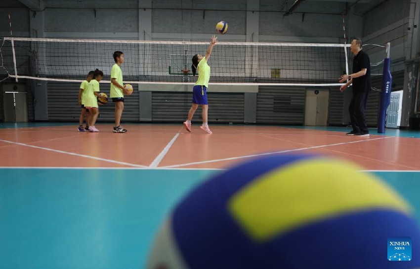 Children practise volleyball as part of a summer camp program at Shenyang Sport University in Shenyang on Aug. 5,2022.(Xinhua/Wang Yijie)