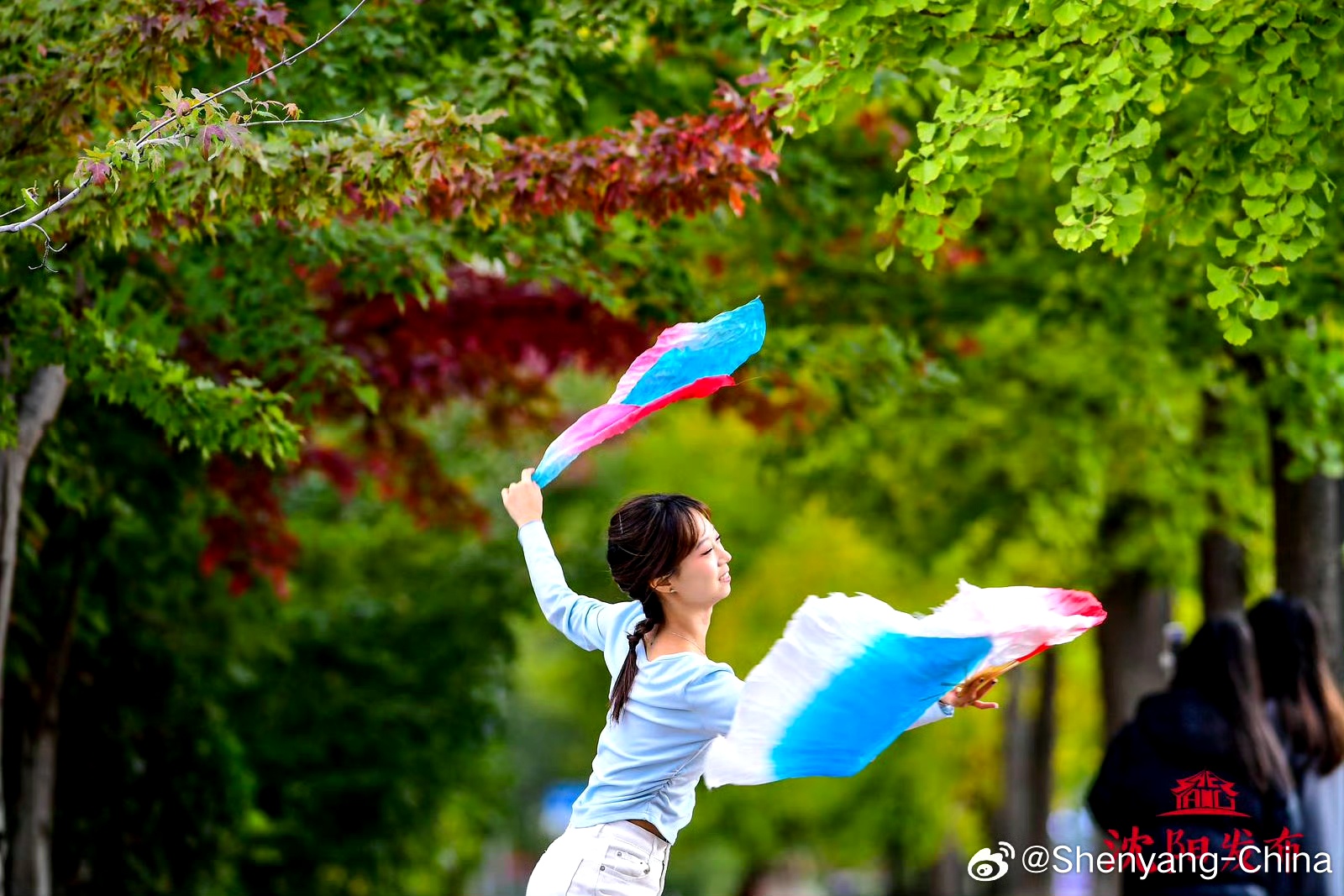 Currently, Shenyang is embracing its autumn with vibrant colors and picturesque scenery. The photo shows a student from Shenyang Agricultural University dancing gracefully under the campus' red maple and ginkgo trees.