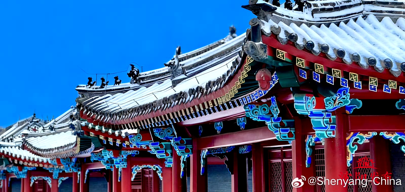 On November 27,Shenyang welcomed its first snowfall of this winter.At the Shenyang Imperial Palace,the vermilion palace walls interweave with the pure white snow,just like an ancient scroll slowly unfolding.