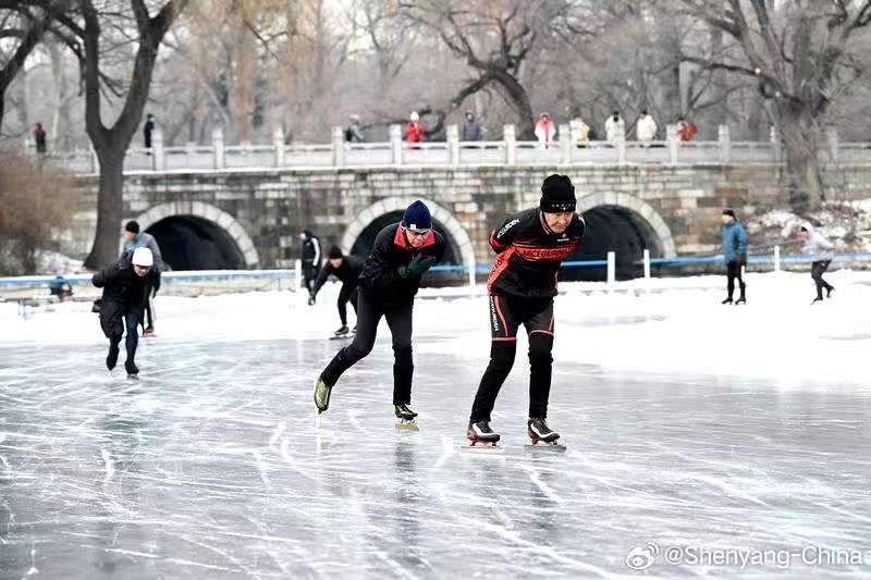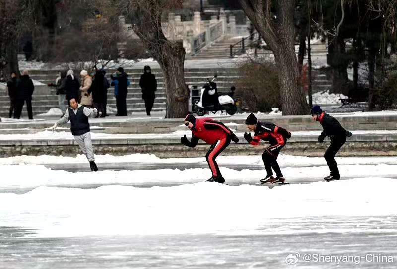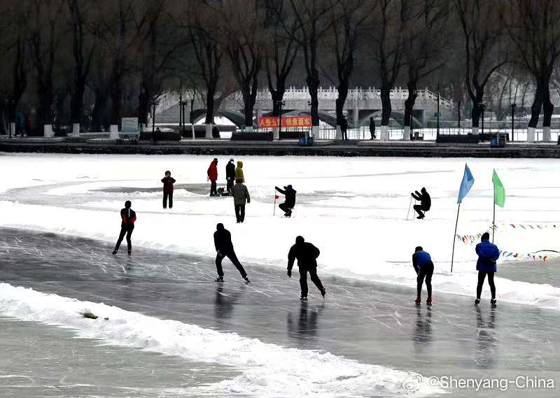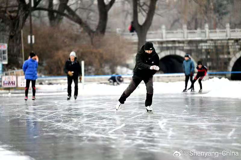 The ice rink in the Beiling Park is bustling with activities in midwinter