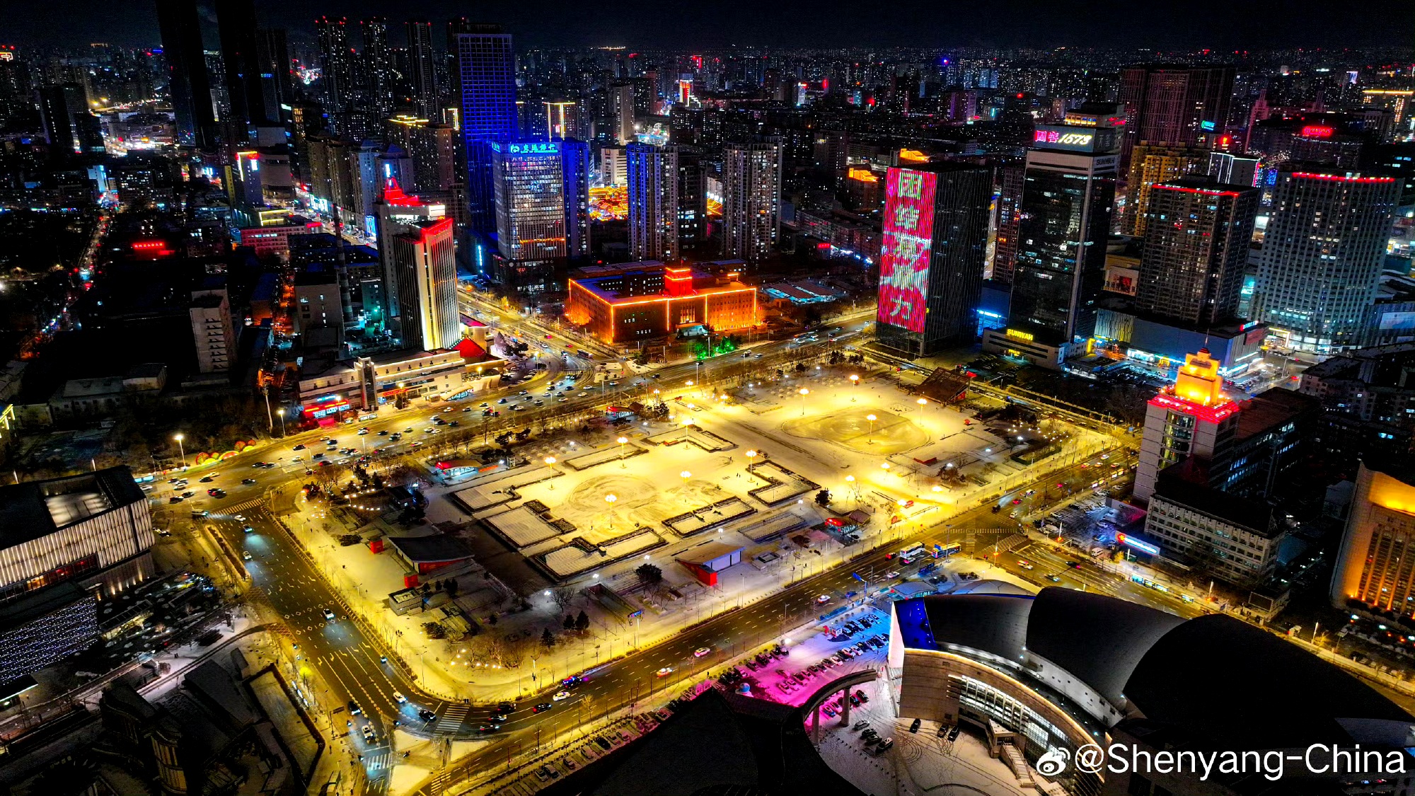 People's Square of Shenyang is brilliantly illuminated at night