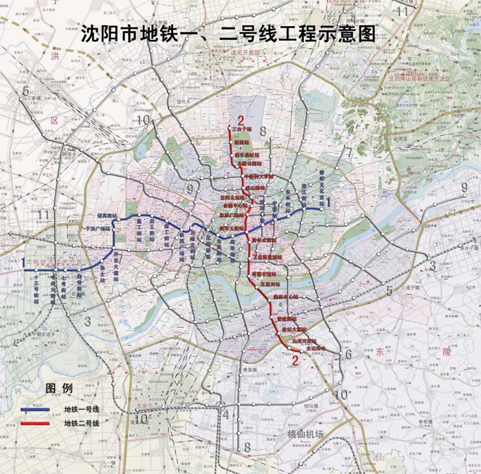 Route map of Shenyang Metro Line One and Line Two