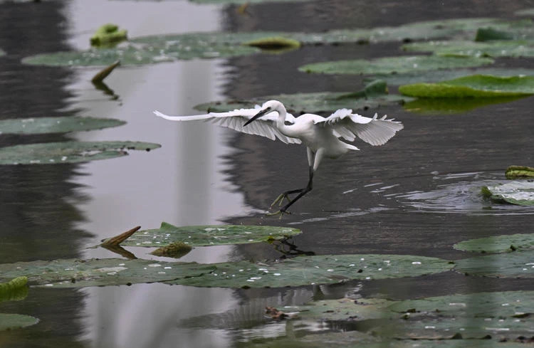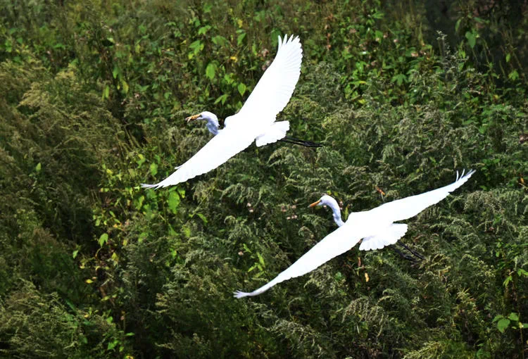 They sometimes frolic and fly in the sky,and sometimes fly down the river to fish and forage,forming a beautiful picture of ecological landscape.