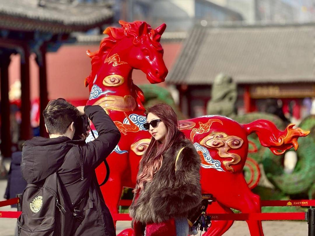 Before the Spring Festival, cultural and creative landscapes with auspicious meanings were unveiled on the square of the Dazheng Hall in the Shenyang Imperial Palace Museum, celebrating the festival together with visitors.