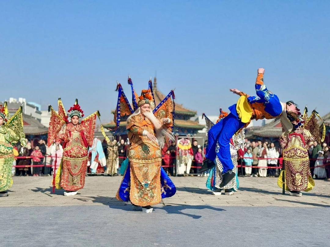 On the first day of the first lunar month, the live Peking Opera show "Ten Thousand Horses Galloping to Celebrate the Spring Festival" was staged on the square of the East Section of the Shenyang Imperial Palace Museum. Amidst an atmosphere of artistry and celebration, the performance brought visitors together in lively festivities to welcome the Spring Festival.