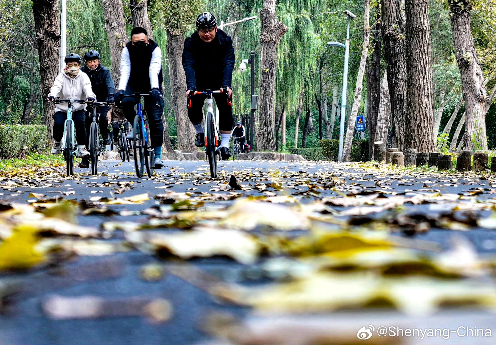 On crisp autumn days, the citizens of Shenyang ride along the Hunhe River. In autumn, people enjoy the pleasure of sports and the beautiful scenery in the city.