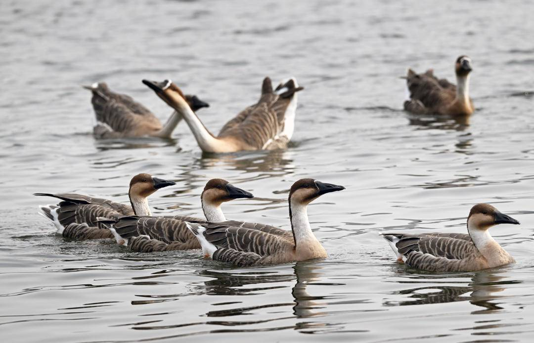 The swan geese move in small groups or large flocks,occasionally soaring high into the air and blending with the surrounding natural scenery,to present a harmonious and beautiful ecological picture.They have become a unique and captivating sight in early winter,attracting citizens and tourists to admire and take photos.