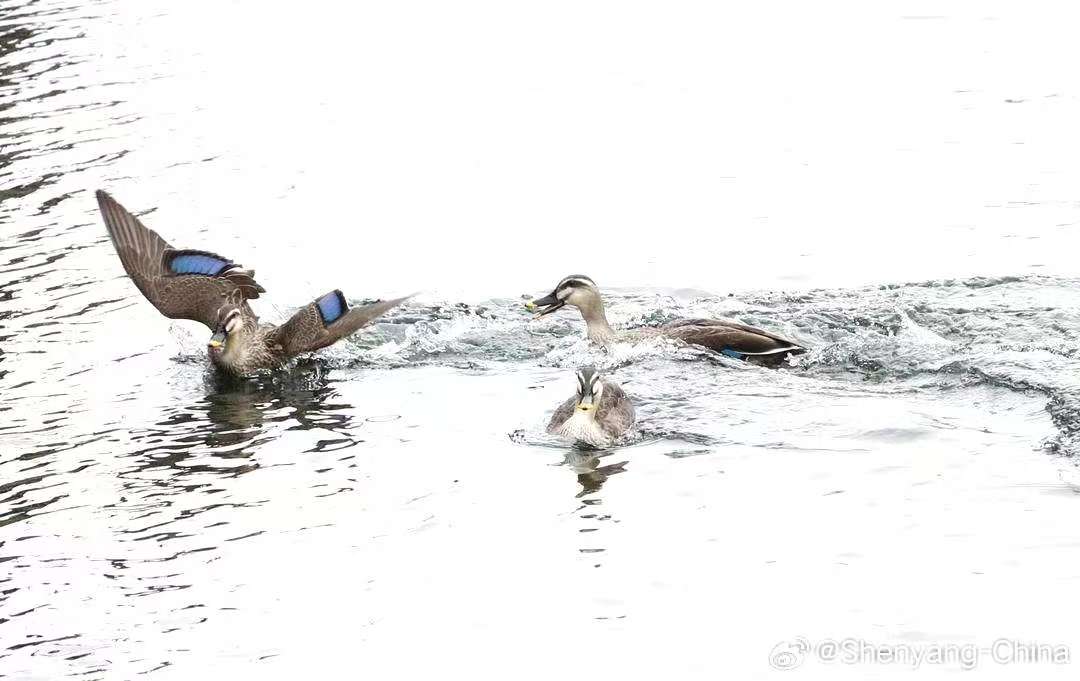 In spring, the Xinkai River in Shenyang has become a paradise for water birds as its water quality keeps improving. Mallards and spot-billed ducks float and forage on the water. Some of them skim across the surface with their wings spread, while others play in pairs.