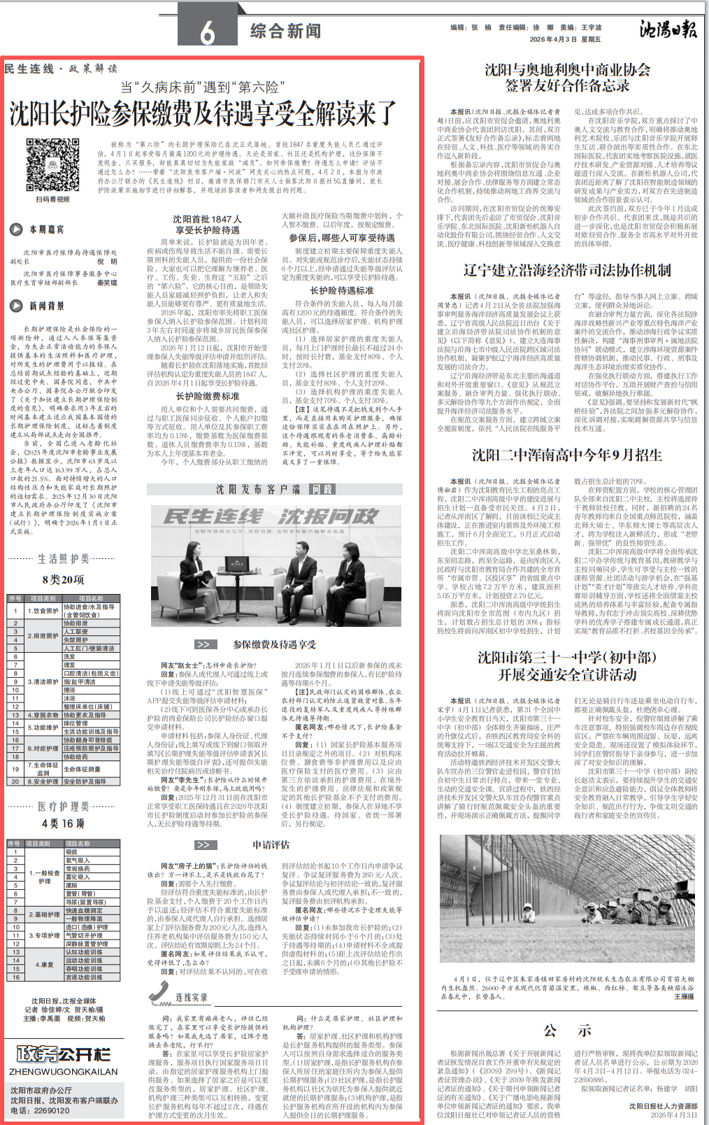 随着长护险在沈落地实施,首批经评估机构认定为重度失能人员的1847人,自2026年4月1日起享受长护险待遇。