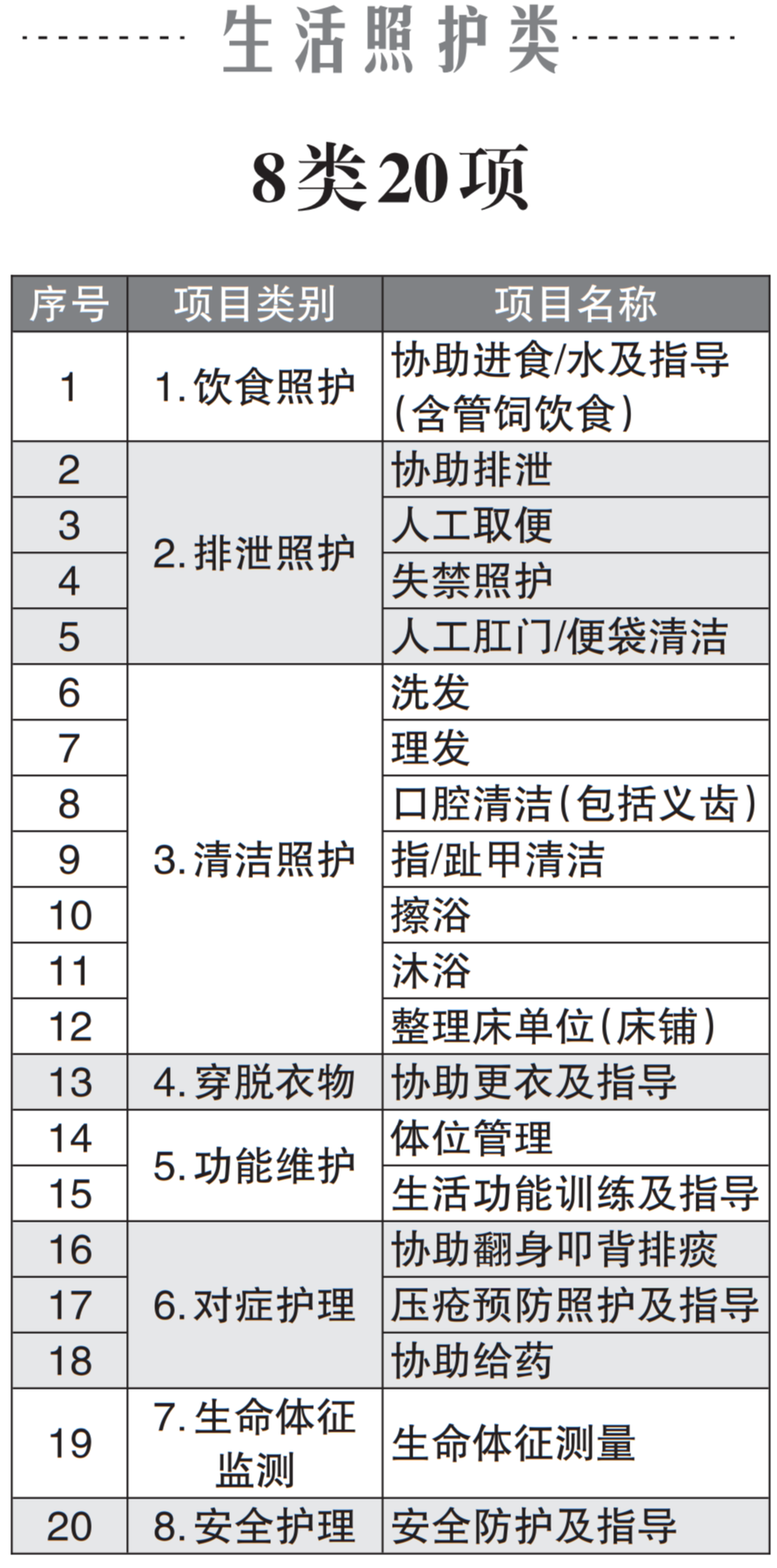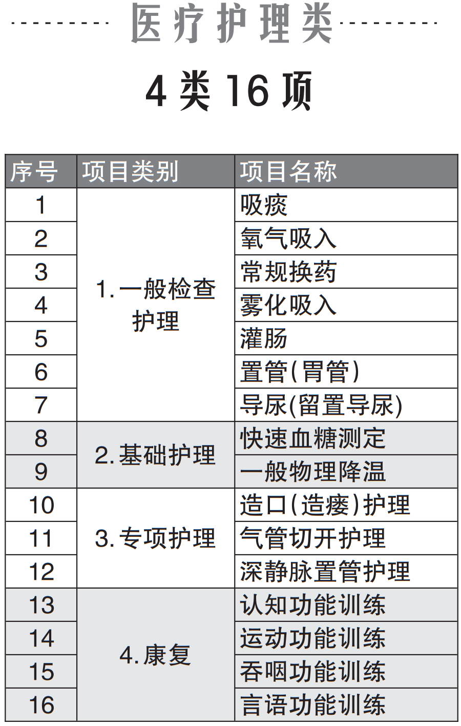 沈阳市执行国家统一制定的长护服务项目目录,包括生活照护和医疗护理服务项目共36项,具体如下。