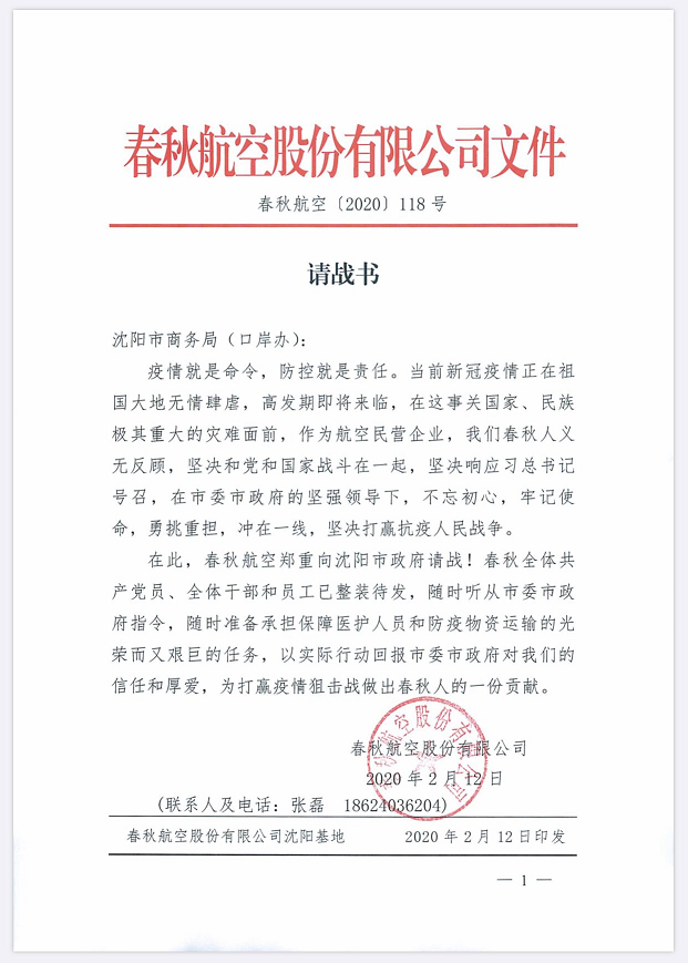面对疫情,驻沈各大航空公司纷纷积极响应,承担社会责任和使命,调整运力,用安全飞行、顺畅保障、优质服务承担保障医护人员和防疫物资运输的光荣任务。南航北方分公司多次承担运送辽宁驰援湖北医疗队包机任务,对保障工作进行周密部署,为医护人员、医疗物资及行李开辟绿色通道,截至目前,已圆满保障四批驰援湖北医疗队,共运送医护人员790人,医疗物资31.514吨。特别是作为航空民营企业的春秋航空公司,主动向市商务局(口岸办)发出请战书,随时听从市委、市政府指令,随时准备承担保障医疗人员和防疫物资运输的光荣又艰巨的任务,以实际行动回报市委、市政府对企业的信任和厚爱。