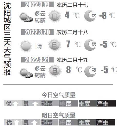 周日,沈城还是以偏北风为主,最高气温7℃,最低气温-5℃。下周前三天,天空以晴到多云天气为主,温度逐渐开始回升,预计到周四前后,白天最高气温有望回升到10℃以上。(沈阳晚报、沈报全媒体主任记者 吕佳)