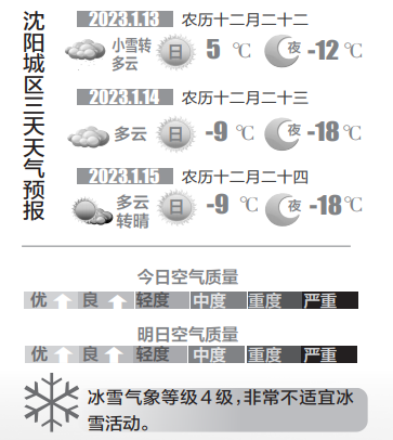 雨雪过后,沈城降温显著,周末两天最高气温在-9℃左右,最低气温在-18℃上下,提醒大家要注意增添衣物,以免感冒。下周一和周二沈城转为晴好天气,气温呈逐渐回升的态势。(沈阳晚报、沈报全媒体主任记者 吕佳)