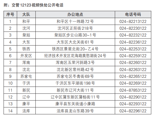 为方便市民办理此项业务,沈阳公安交警现将“轻微交通事故视频快处公开电话”进行公布。(沈阳日报、沈报全媒体主任记者李欣)