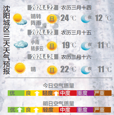 降温、降雨并不持久,周三天空转晴,最高气温又回到20℃以上,人体感觉相对也是比较舒服的。周四、周五都是多云为主的天气,气温比周三更高,其中周四风力偏大,提醒大家留意临近的天气预报,及时调整出行安排和着装方式。(沈阳晚报、沈报全媒体主任记者吕佳)