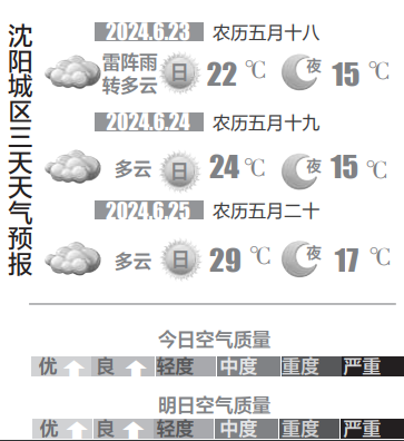 下周一随着冷涡移出,沈城转为多云天气,气温稍有回升,最高气温在24℃左右,最低气温在15℃上下,这样的天气比较适宜户外活动。下周二到周四沈城在晴和多云之间转换,气温继续回升,最高气温将升至29℃到33℃之间,最低气温在17℃到20℃之间,随着气温的升高,空调成为大多数人对抗酷热的神器,提醒大家在享受空调带来的凉爽的同时,不要长时间呆在密闭的空调房内。(沈阳晚报、沈报全媒体主任记者吕佳)