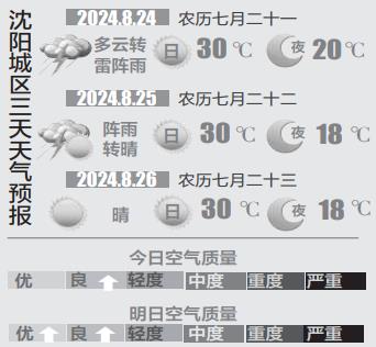 下周一沈城阳光明媚,晴好天气将再次回归,气温依旧坚挺,但是少了盛夏的张狂,最高气温在30℃左右徘徊。下周二和周三沈城都是以晴为主的天气,气温相差不大。处暑节气过后,暑热逐渐消除锋芒,早晚已经可以捕捉到丝丝凉意,大家可以选择在早晚外出散步,适当进行一些锻炼。(沈阳晚报、沈报全媒体主任记者 吕佳)