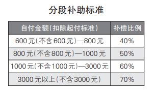 补偿范围:(1)对统筹基金支付限额15万元以内的费用进行分段补助。参保人员发生的符合基本医疗保险规定的住院费用、门(急)诊抢救费用,在职工基本医疗保险统筹基金年最高支付限额阶段内,符合基本医疗保险统筹基金支付范围的个人按规定比例自付部分(不含起付标准),600元以上(不含600元)的医疗费用。(2)对超过统筹基金支付限额15万元的费用进行补助。本市就医及异地长期居住人员在备案地就医,超过基本医疗保险统筹基金年最高支付限额以上的费用,在执行基本医疗保险规定的各等级医院的起付标准、个人自付比例等规定基础上,大额医疗费用补助保险按50%比例降低上述起付标准和个人自付比例给予报销(政策规定的部分人造器官和体内置放材料个人自付部分除外)。