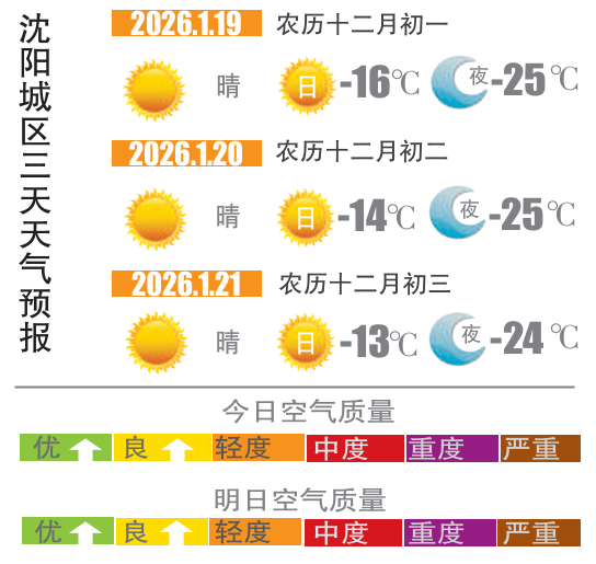 目前已进入“四九”,来到一年中最冷的时期。1月18日,记者从沈阳市气象部门获悉,周一(19日)新一股冷空气到来,沈城“冻感”将变本加厉,预计周一到周三(21日)是未来一周里最冷的几天,虽然以晴为主,但最高气温只有-13℃到-16℃,最低气温将降至-24℃到-25℃,是今年以来的新低,“三九不寒四九寒”这句话在今年特别应景。