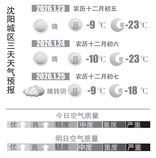 俗话说“三九四九冰上走”,由于冷空气耐力持久,严寒已经持续数日,如今“四九”已经过半,“冷如冰封”的日子还在延续。1月22日,记者从沈阳市气象部门获悉,预计周五(23日)到周日(25日)白天,沈城天空依旧晴朗,气温缓慢回升,最高气温来到-10℃上下,最低气温依然在-20℃附近徘徊。