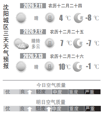 2月10日,记者从市气象部门获悉,根据最新的气象资料分析,预计未来三天(11日至13日),沈城在晴和多云之间转换,气温呈逐日回升的态势,其中13日最高气温可达10℃附近,春意悄然先行,南风轻缓,这样的天气适宜开窗纳新和购买年货。