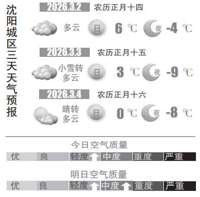 3月1日,记者从沈阳市气象部门获悉,周一(2日)是开学首日,沈城天气以多云为主,气温将继续回升,最高气温在6℃左右,最低气温在-4℃上下,北风相伴,早晚温差较大,在这里提醒各位家长和学生,要根据气温变化及时增减衣物。