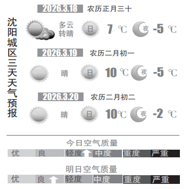 3月17日,记者从沈阳市气象部门获悉,预计周三(18日)白天沈城天清气朗、雪花融化、降温明显,最高气温在5℃左右,最低气温在-5℃上下,白天北风相伴,寒意加重,大家要注意添衣保暖。