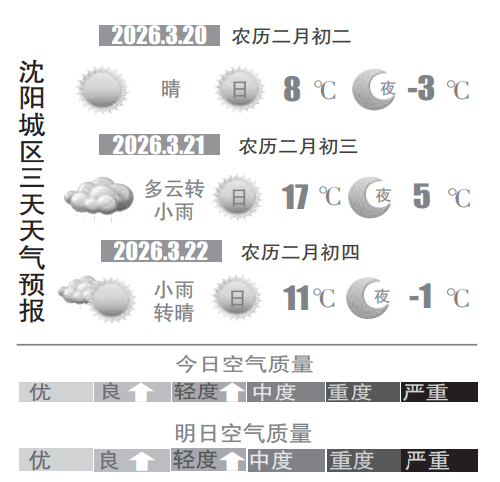 3月19日,记者从沈阳市气象部门获悉,预计周五(20日),沈城彻底告别雨雪大风天气。但料峭寒意还没有完全退场,最低气温仍在0℃以下,早晚仍要穿件厚实点的外套,别被清晨的凉意偷袭。