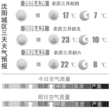周二(21日)到周四(23日),沈城以晴好天气为主,气温整体平稳,白天最高气温均维持在20℃以上,不过白天风力依旧偏大,户外出行务必注意防风,同时严守防火安全,谨防火灾隐患。近期天气阴晴冷暖切换频繁,早晚温差较大,大家出行要常备衣物,适时增减穿搭;同时,关注大风天气带来的影响,合理规划日常出行与户外活动。(沈阳晚报、沈阳发布客户端记者徐佳婷)