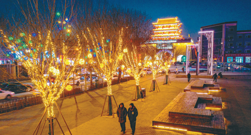 各式亮化小品、景观树灯、精美挂件流光溢彩,让市民感受到浓浓的年味。