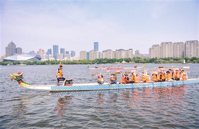 6月3日,一场精彩的龙舟赛在浑河展开。当天是端午节,市民用赛龙舟的方式欢度假期。(张文魁摄)