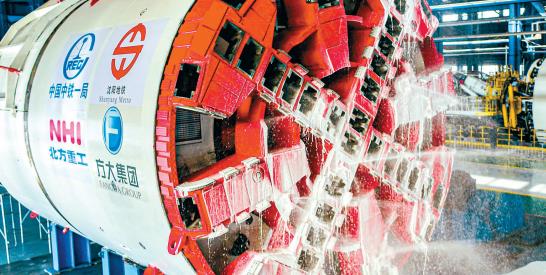 装有“中国芯”的盾构机在沈阳下线。(李浩摄)