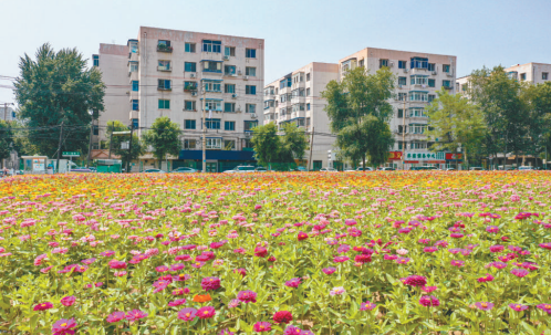 7月18日,沈河区北一经街近2000平方米的花海姹紫嫣红。沈阳坚持生态优先、绿色发展理念,加强生态环境治理保护,市民获得感和幸福感大幅提升。(张文魁摄)