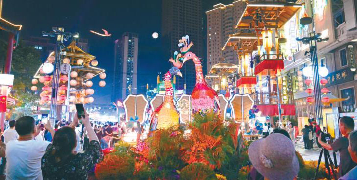 龙飞凤舞 ,龙凤呈祥。国庆假期,老北市精心打造的“龙腾福地·彩凤追月”沉浸式艺术体验,呈现出国泰民安、祥和欢乐的美妙图景。(靳军摄)