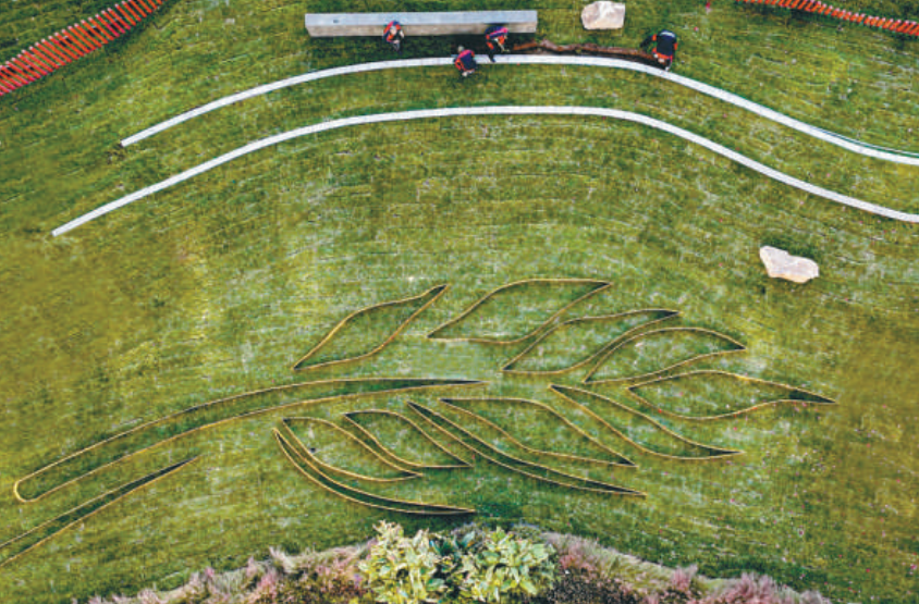 10月27日,工作人员在沈阳街头巨型花坛精心布置,吸引市民目光的同时,让秋日城市更显生机。(