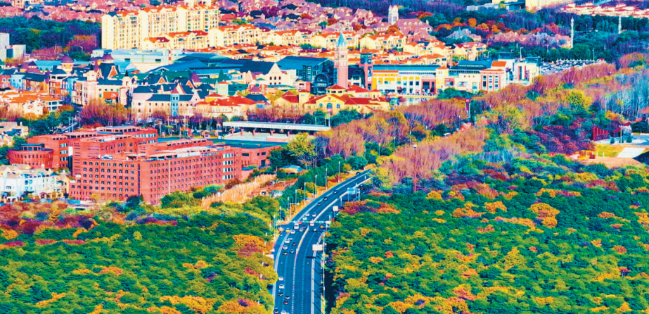 11月5日,沈棋路呈现枫叶红黄相映、银杏金黄的景观。这里被浓郁秋意染成一幅五彩画卷。(张文魁摄