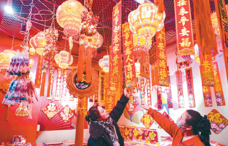 1月22日,市民在选购新春饰品。春节的脚步临近,沈阳的年味在红彤彤的新年饰品中愈发醇厚。对联、窗花、红灯笼等各类新年饰品已悉数上架,色彩鲜亮的喜庆饰品将摊位装点得暖意融融,前来选购的市民络绎不绝,勾勒出一幅热闹祥和的节前备货图景。(张文魁摄)